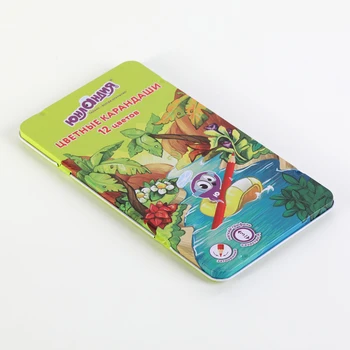 Wholesale 12 Color Pencil Box Tinplate Cards Empty Metal Tin Box with Holder for Craft and Stickers Gift Idea
