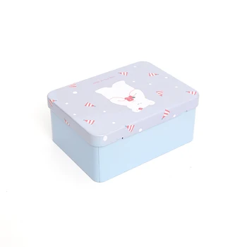 Beautiful Small Rectangle Metal Tinplate Gift Packaging Cute Food Candy Container Baby Birth Tin Box with Handle Candy Tin Box